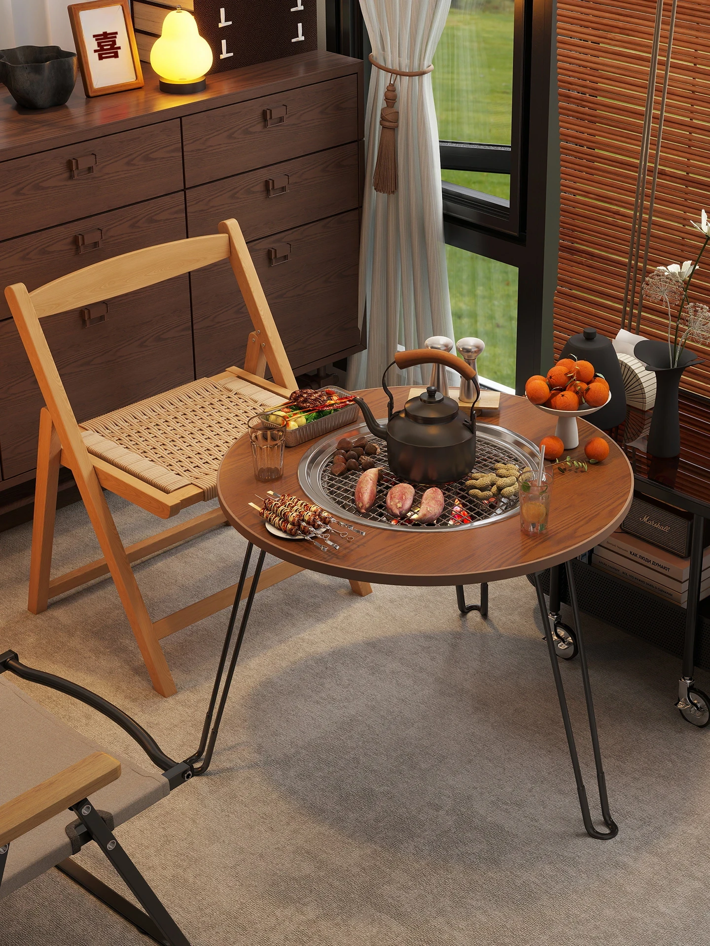 囲炉裏でお茶を楽しむための全セット!新しいデザインの屋内外兼用バーベキュー炉、家庭用テーブル付き。炭火で温かいひとときを演出し、友人や家族との特別な時間をお楽しみください!