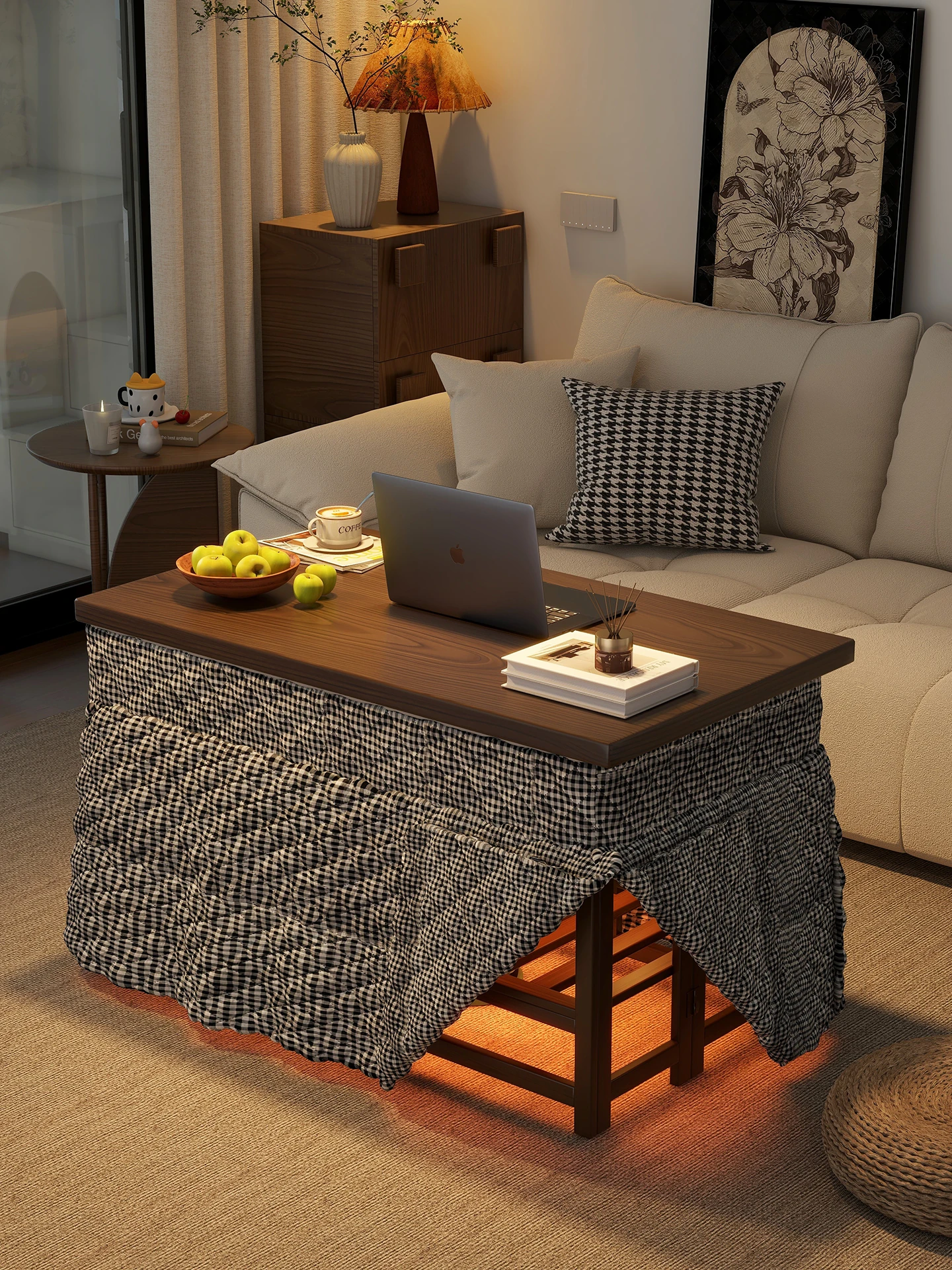 家庭用暖かい火を囲むテーブル|簡単設置・小型長方形|冬の作業や食事に最適!暖かさと快適さを両立した一体型ダイニングテーブルで、寒い季節を楽しく過ごしましょう!