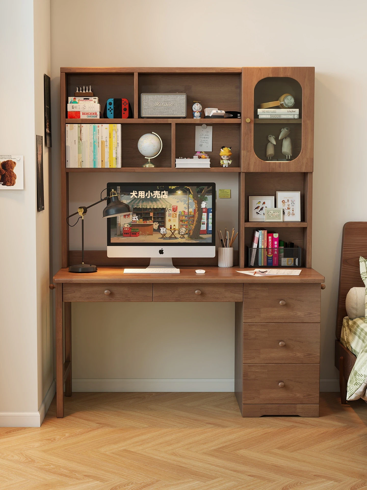 天然木材使用!実用的な書斎セット:デスク、書棚、書架の一体型。子供から高校生まで、学習に最適なスタイリッシュなデザイン。家庭やオフィスにぴったりな、快適な作業スペースを提供します!