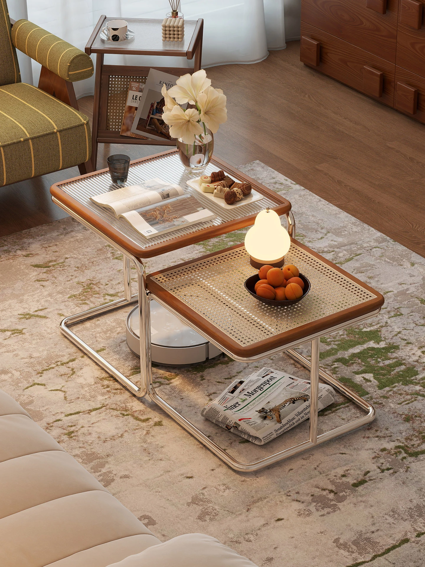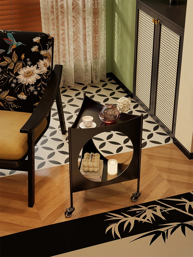 レトロスタイルのリビング小型サイドテーブル 移動可能なコーナーテーブル 小スペースに最適なクリエイティブな寝室収納ラック モダンミニマリストのコーナーテーブル