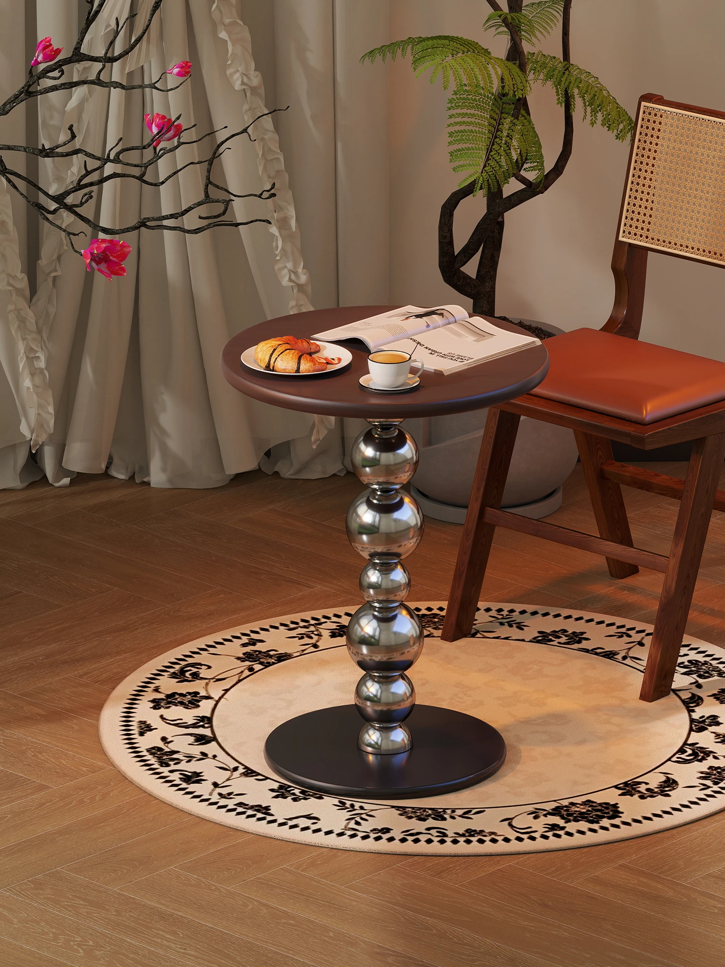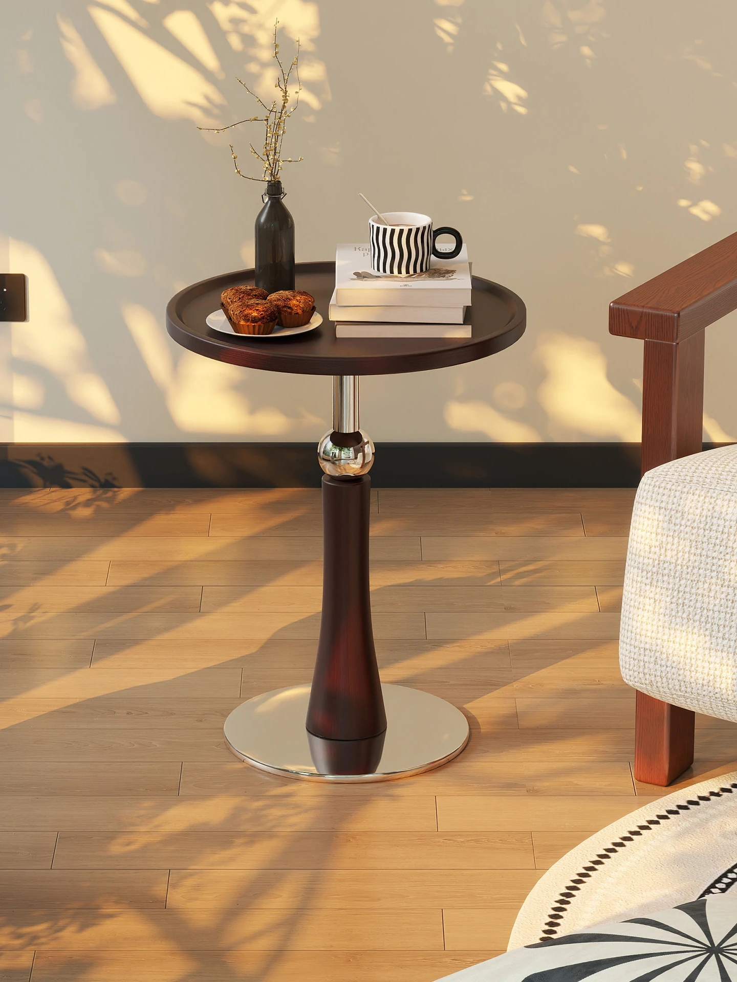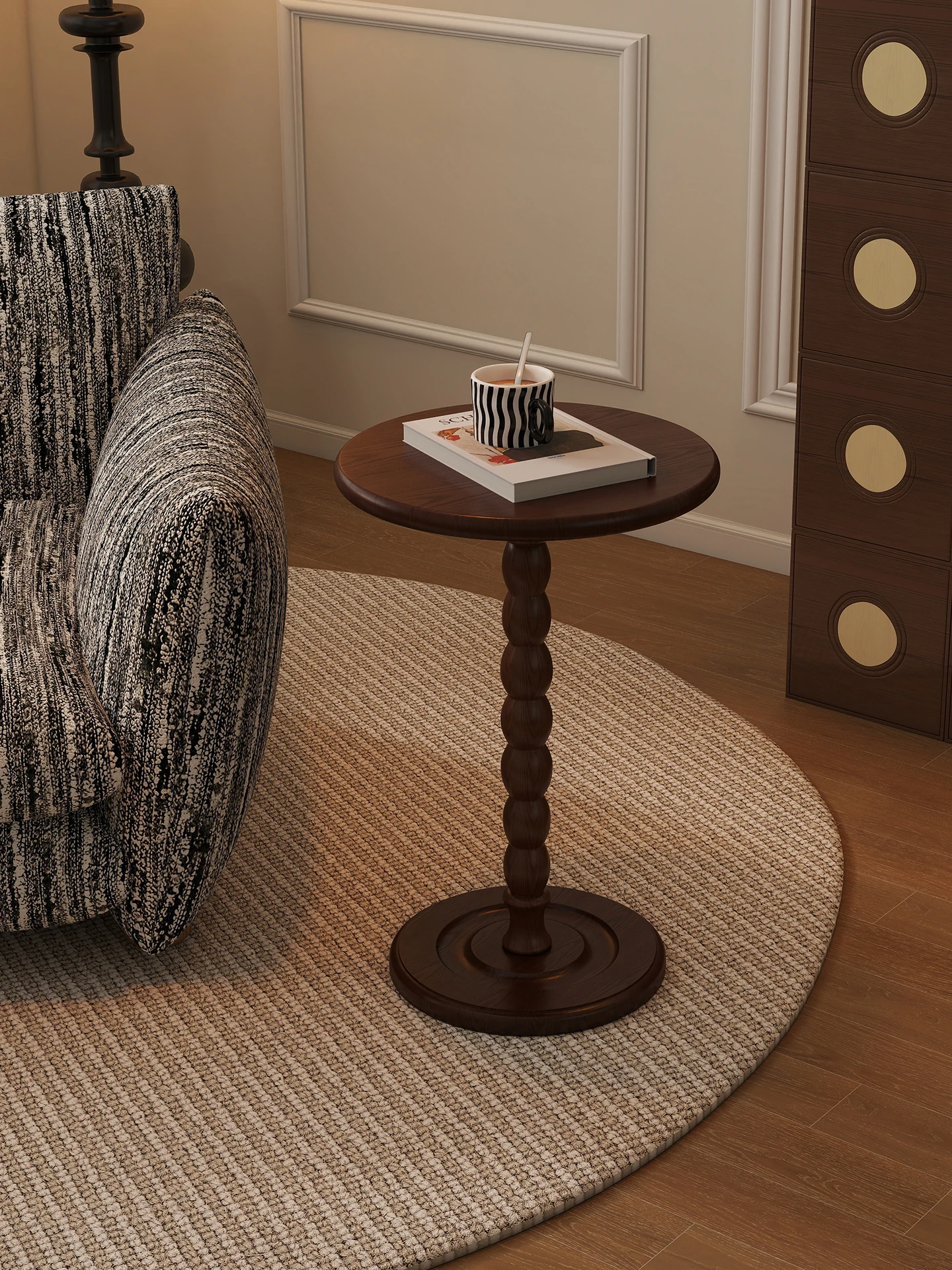 アンティーク風の木製サイドテーブル - 移動可能なリビング用小さな丸テーブル、ベッドサイドやフレンチバルコニーにぴったりの小茶卓!おしゃれで実用的なインテリアを演出します。