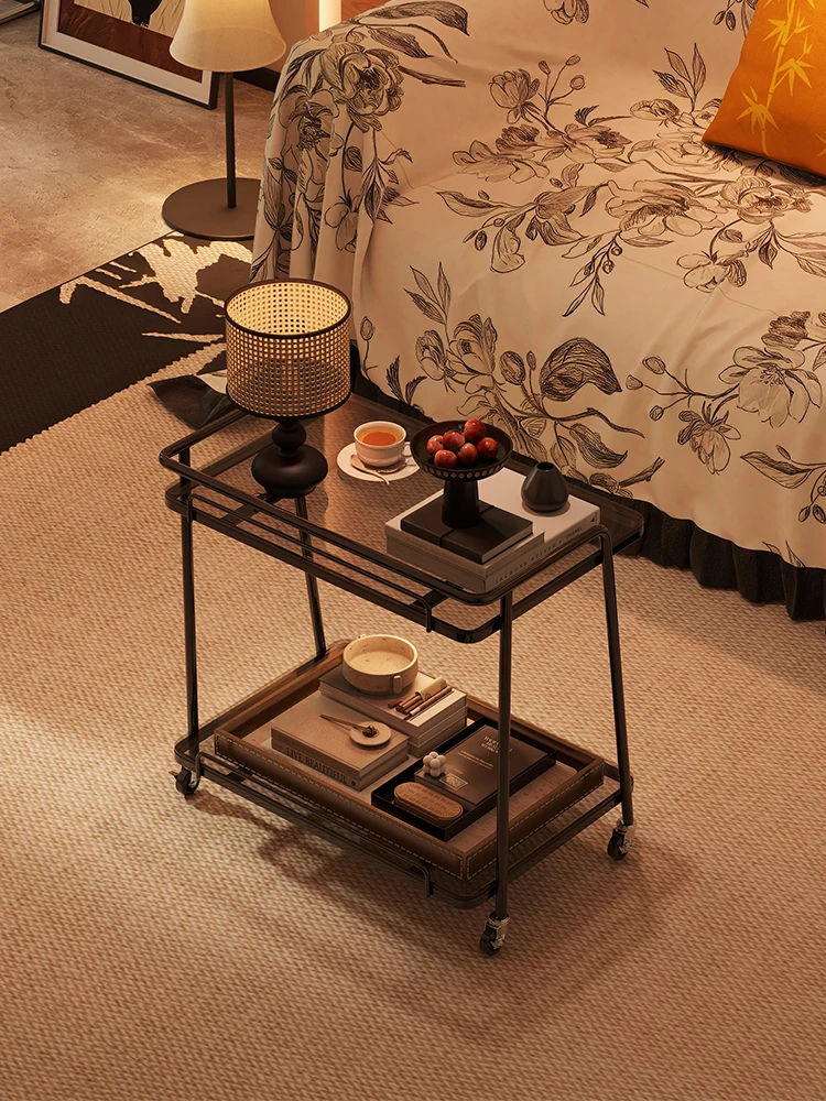 アンティーク風 移動式サイドテーブル ソファサイド&ティーテーブル 小型キャスター付きガラスサイドテーブル おしゃれな収納ラック スナック収納に最適!