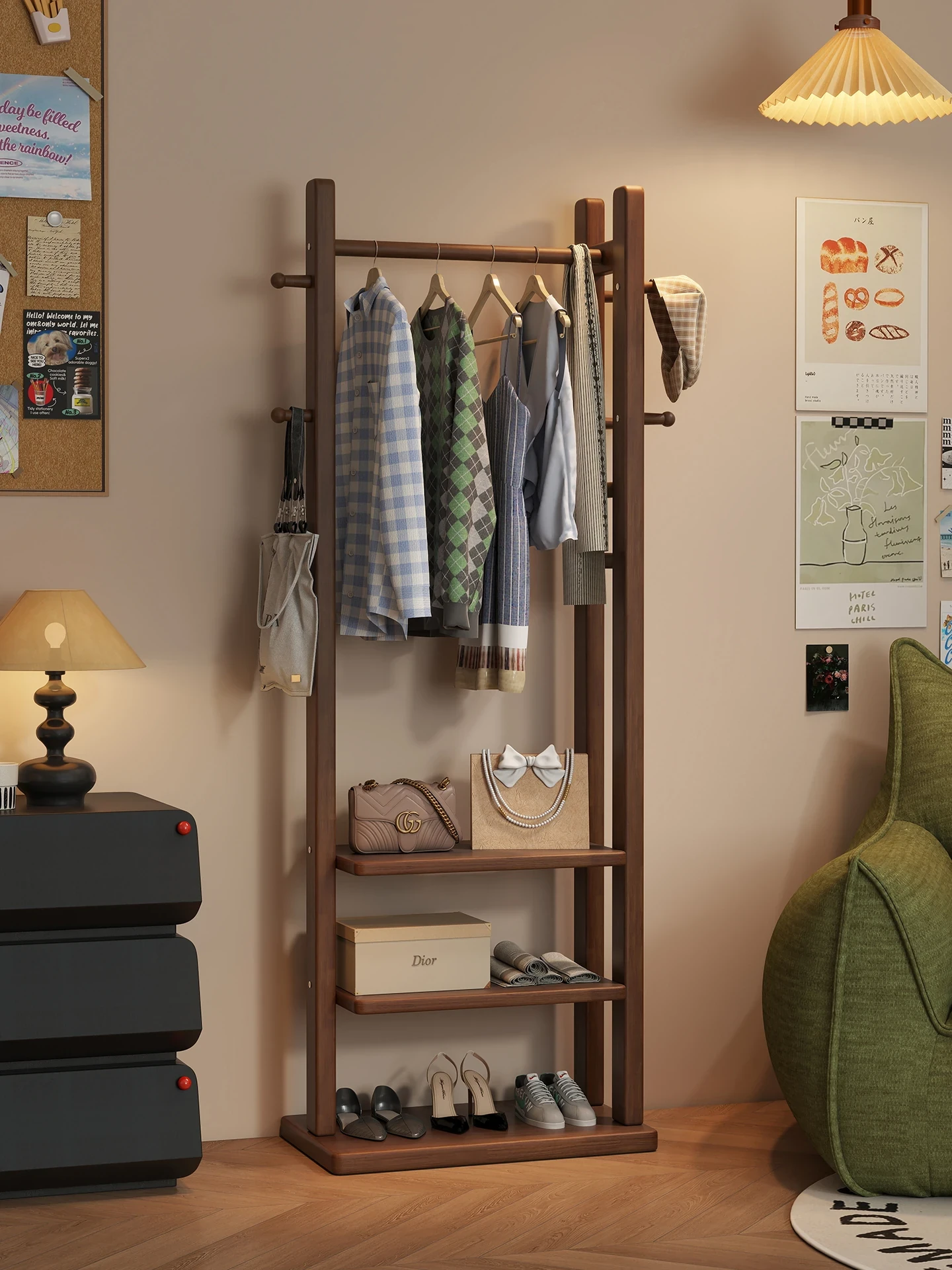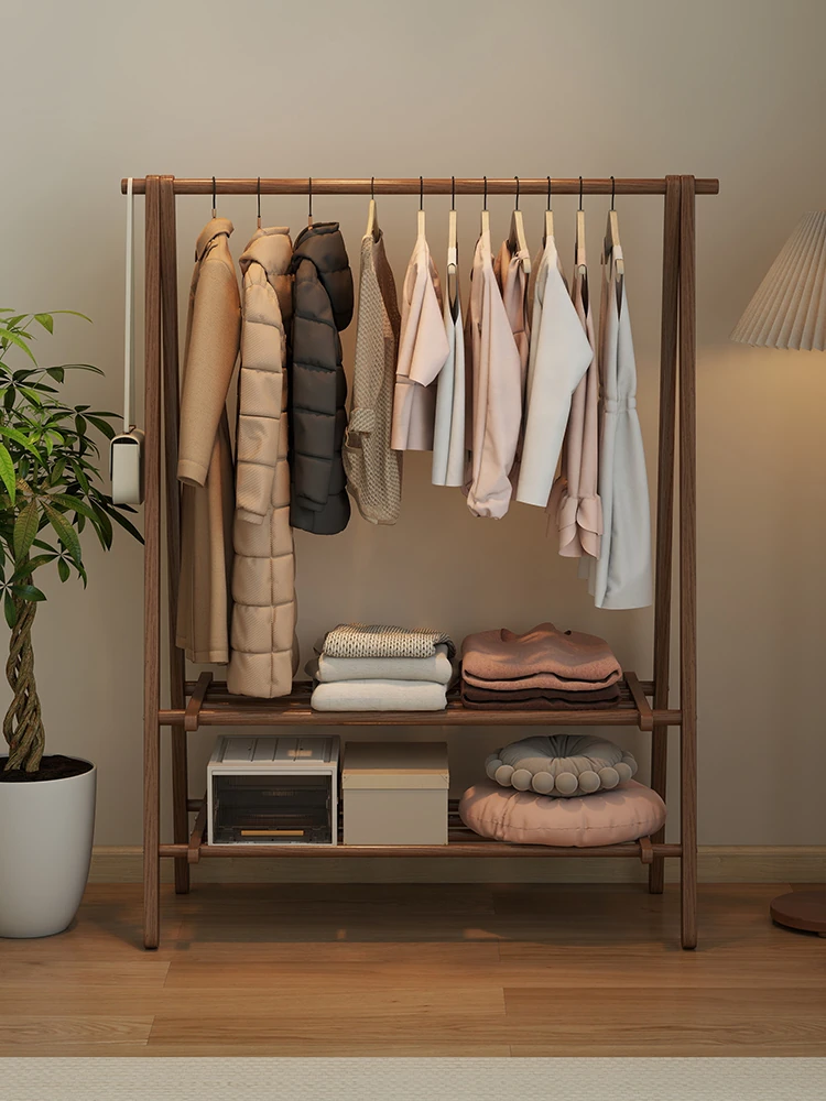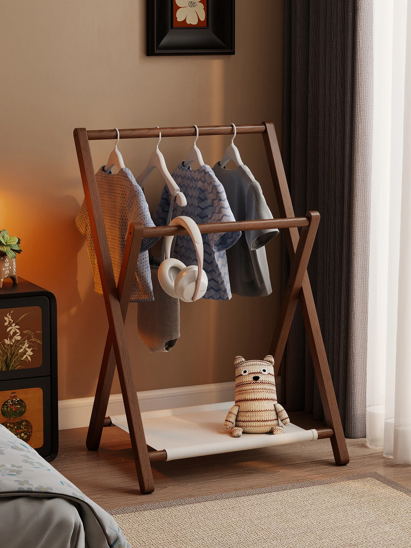 省スペース折りたたみ式実木製衣類ハンガー - 寝室のベッドサイドに最適!夜のお洋服をスマートに収納!おしゃれで機能的な衣帽架で、生活空間を美しく演出します。