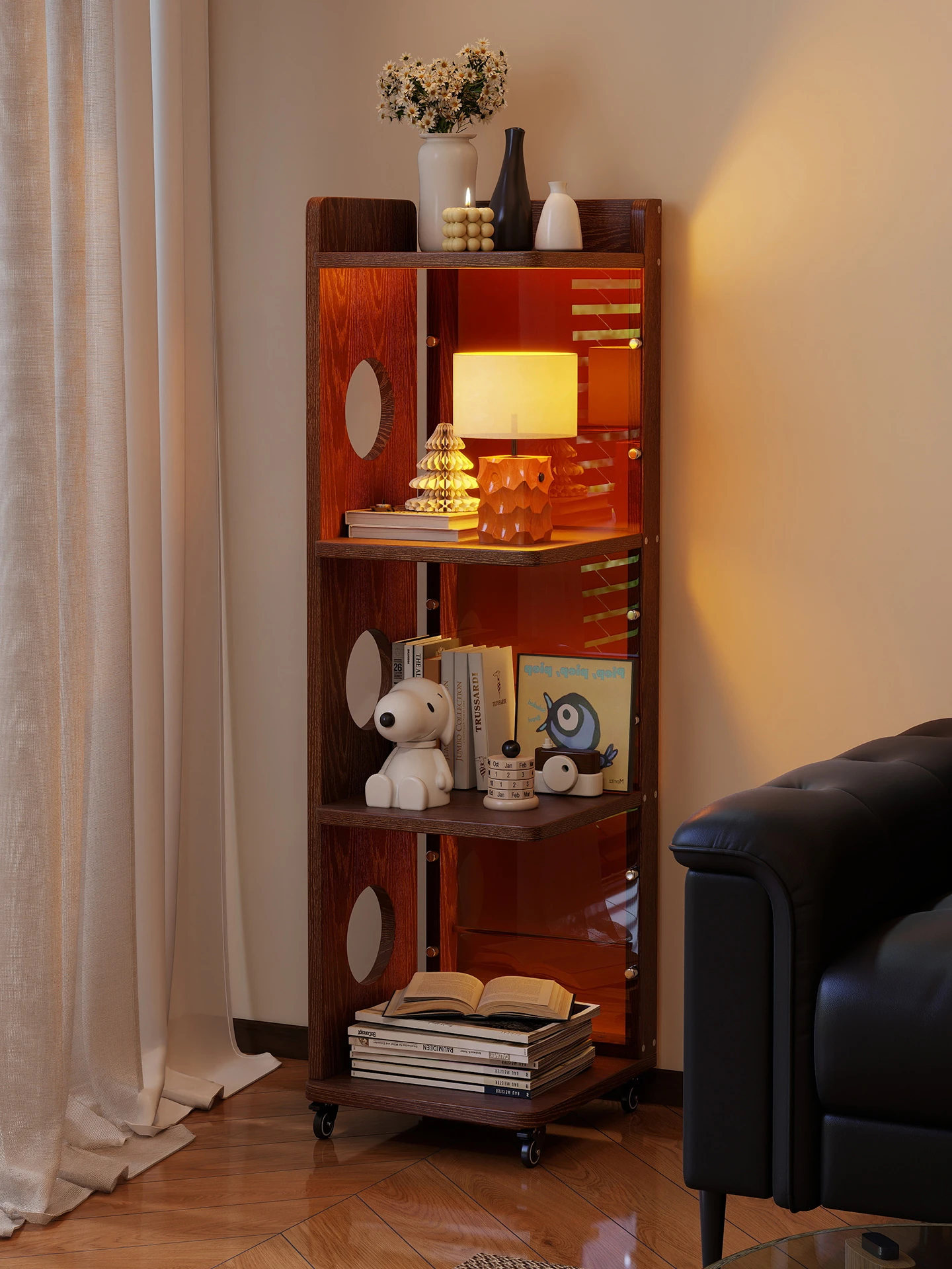 ヴィンテージ風の無垢材フロアスタンド書棚、角型収納ラック - 家庭用リビングやソファに最適!移動可能なディスプレイキャビネット、ベッドサイドサイドテーブルとしても活躍!