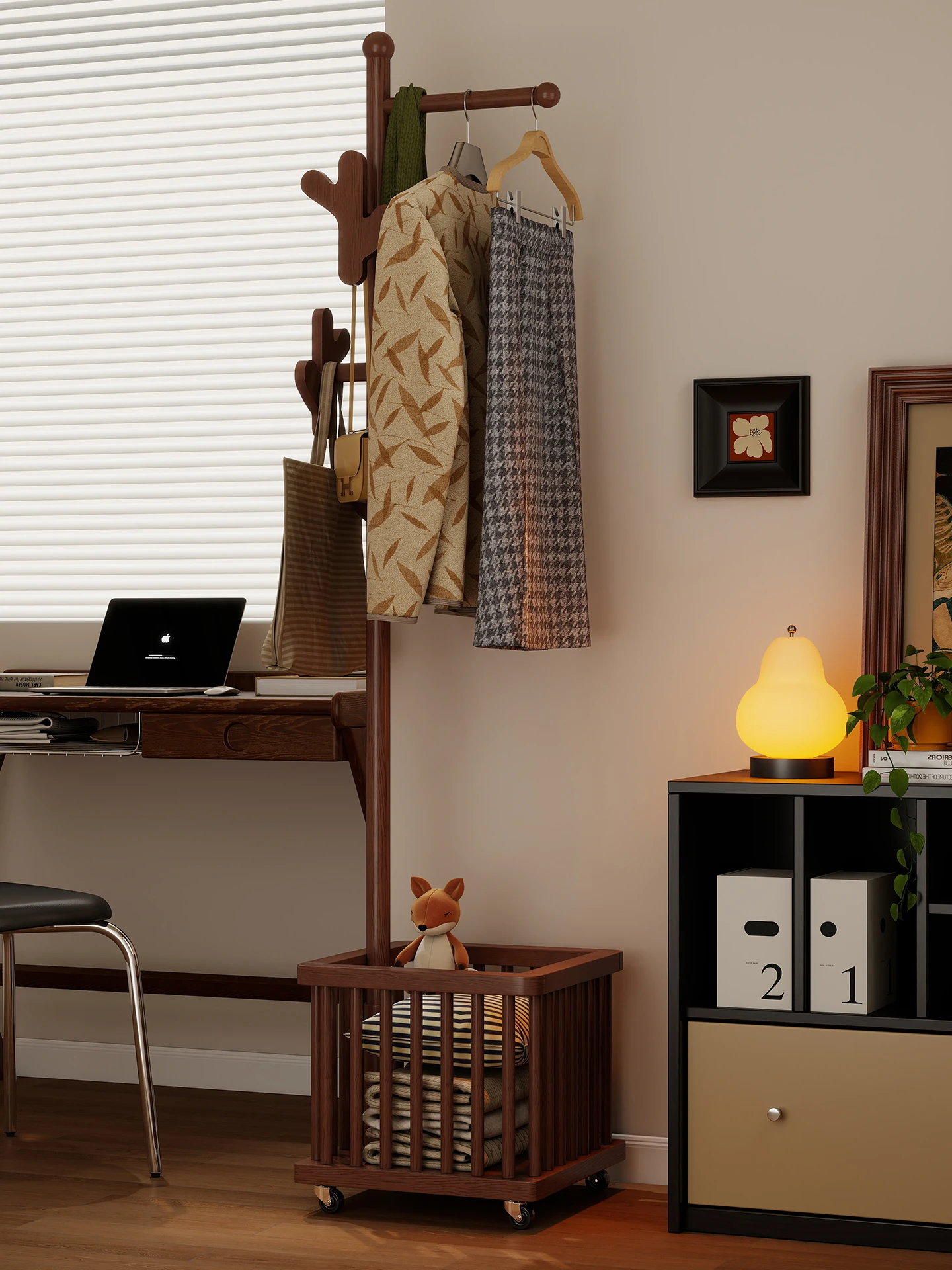 天然木製のスタイリッシュな衣類ハンガー!移動可能なフロア型コートラックで、寝室にも最適。おしゃれなデザインで、衣類やバッグをすっきり整理できます。洗濯物入れとしても使える多機能アイテム!