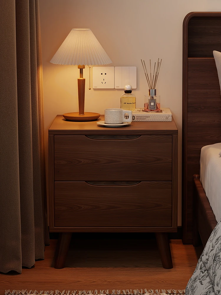 Pushanji Solid Wood Minimalist Luxury Small Bedroom Leather Nightstand - Modern Simple Storage Solution for Stylish Interiors