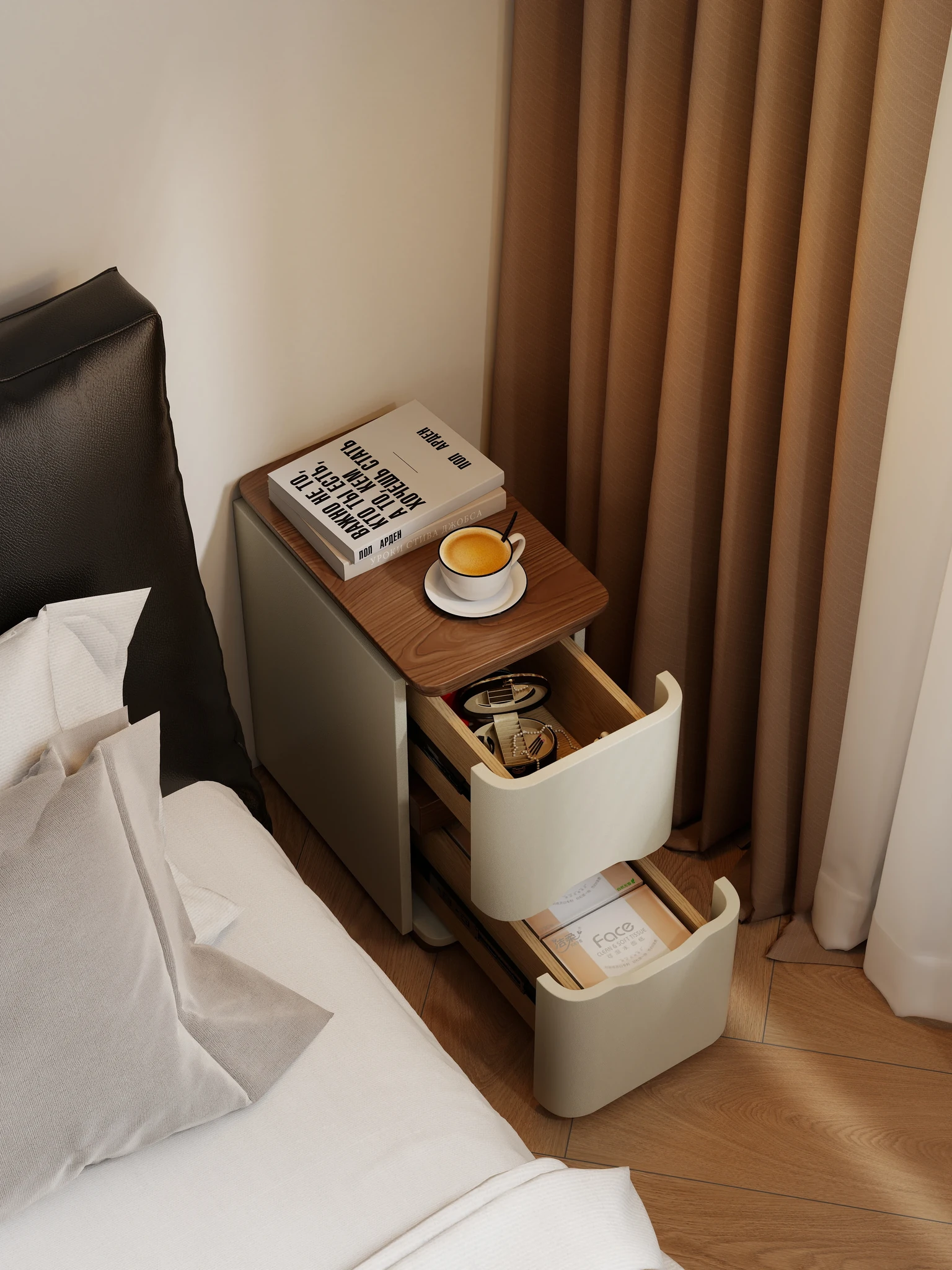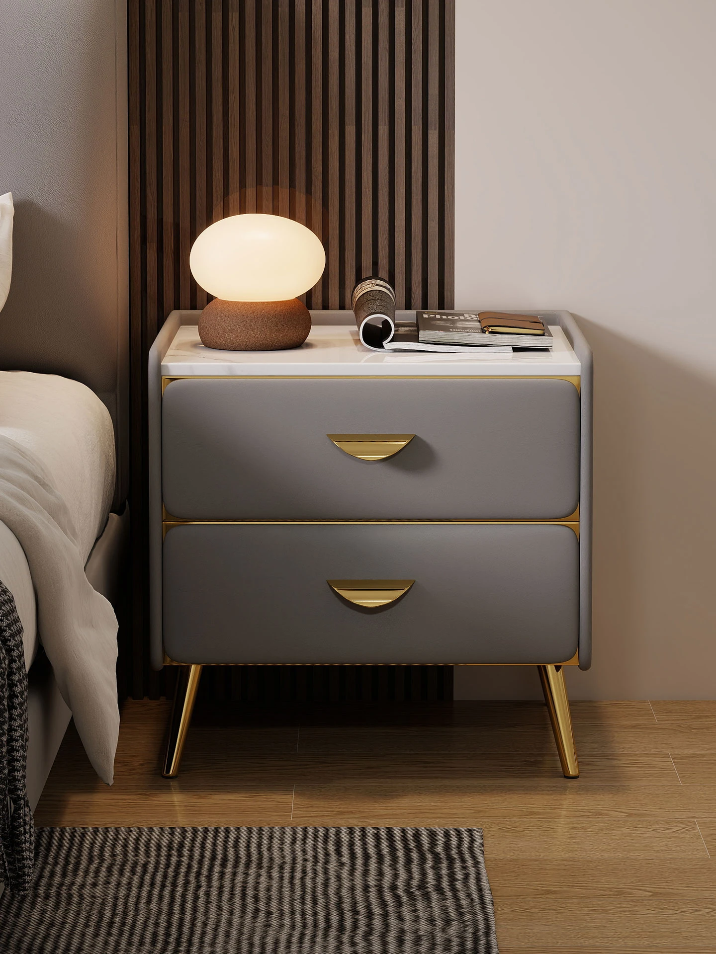 Modern Minimalist Luxury Nightstand with High-End Leather and Solid Wood - 2025 New Collection Bedroom Storage Cabinet