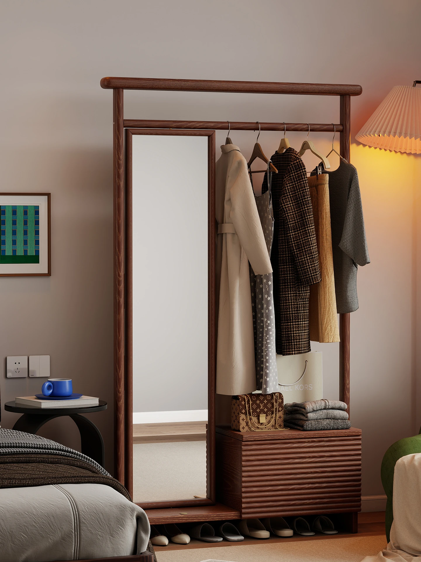 Elegant Solid Wood Coat Rack with Full-Length Mirror - Versatile Floor Standing Clothes Hanger for Bedroom, Simple Design for Home Use, Perfect for Dressing and Trying On Outfits