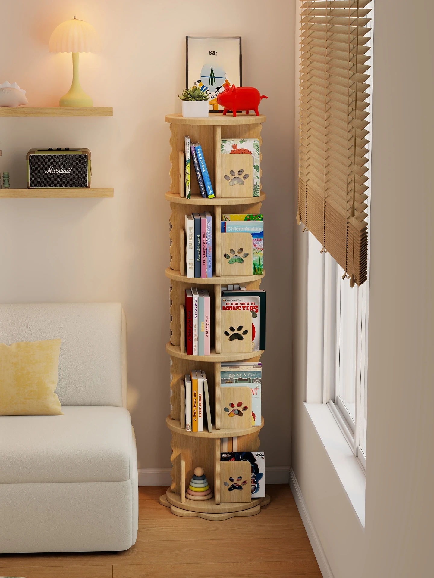 All-Wood 306-Degree Rotating Bookshelf - Ideal for Home, Kids' Picture Books, Bedroom, and Study Room - Stylish Storage Solution for Students