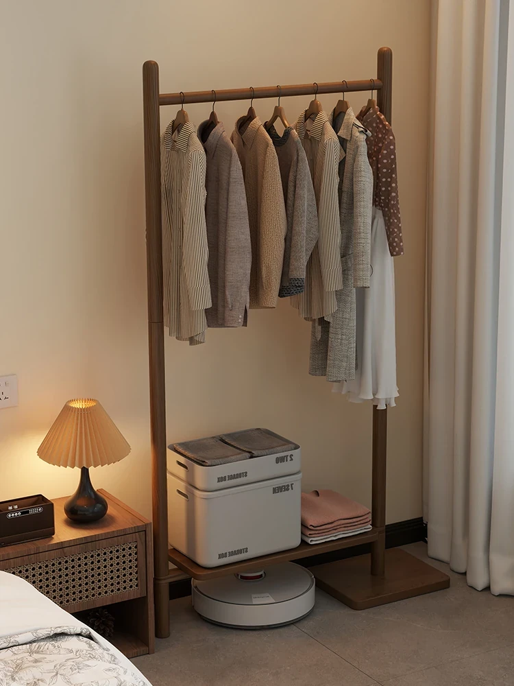 Compact Freestanding Wooden Clothes Rack for Bedroom - Space-Saving Design for Hanging Clothes by the Bed, Simple and Stylish! Perfect for Organizing Your Space.