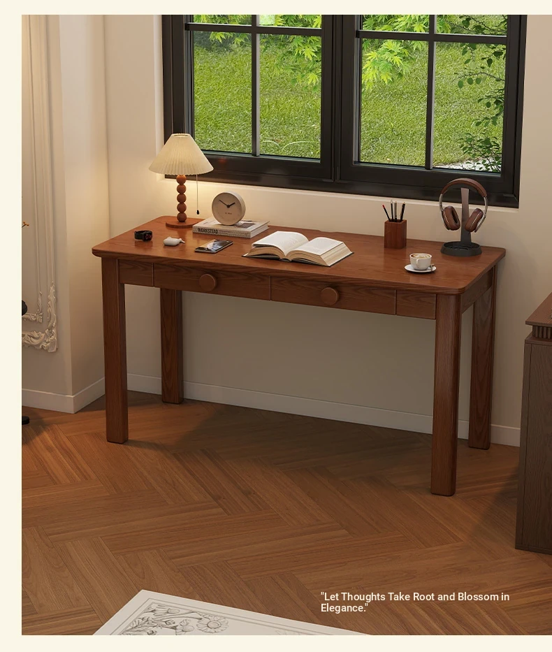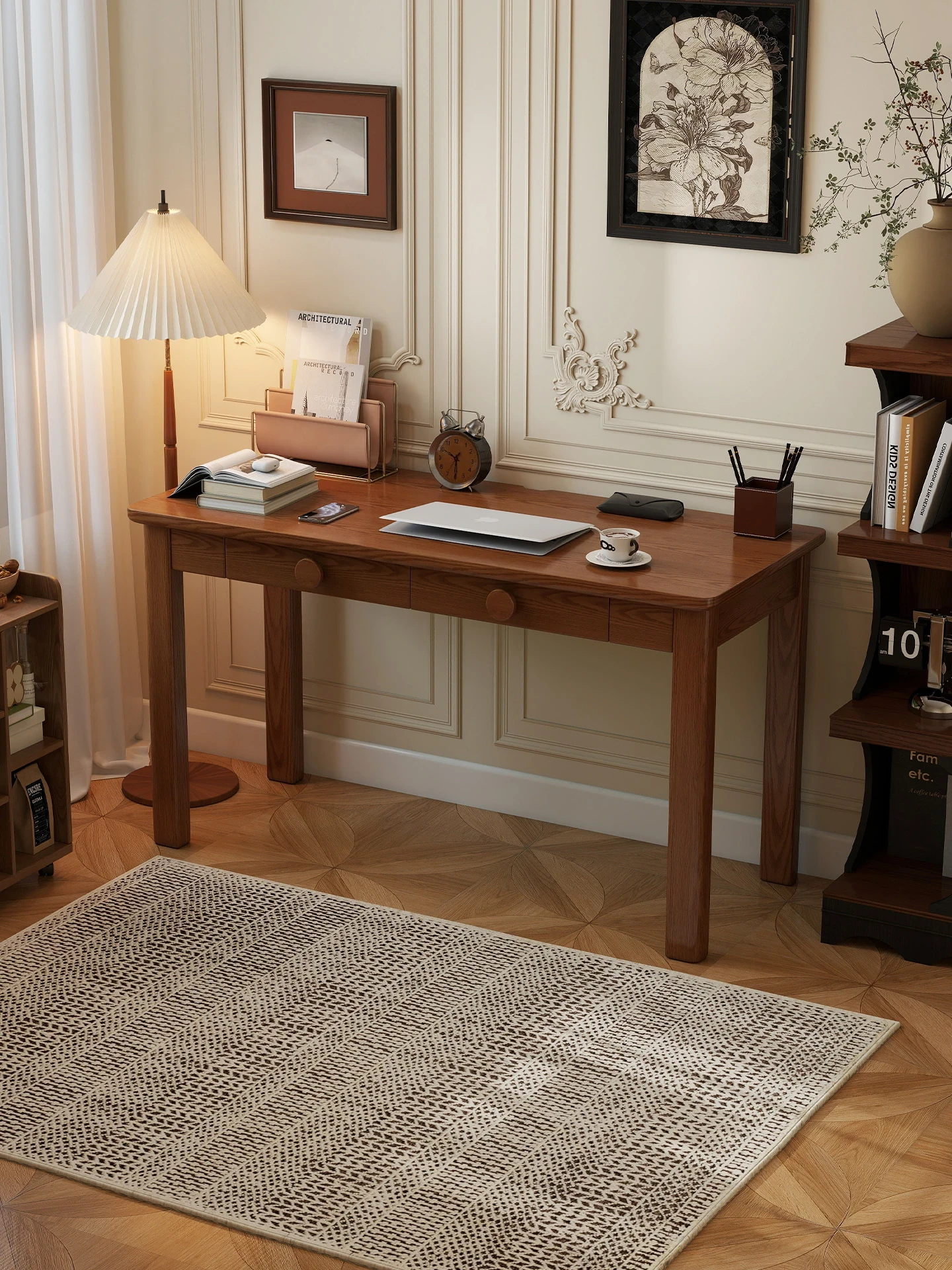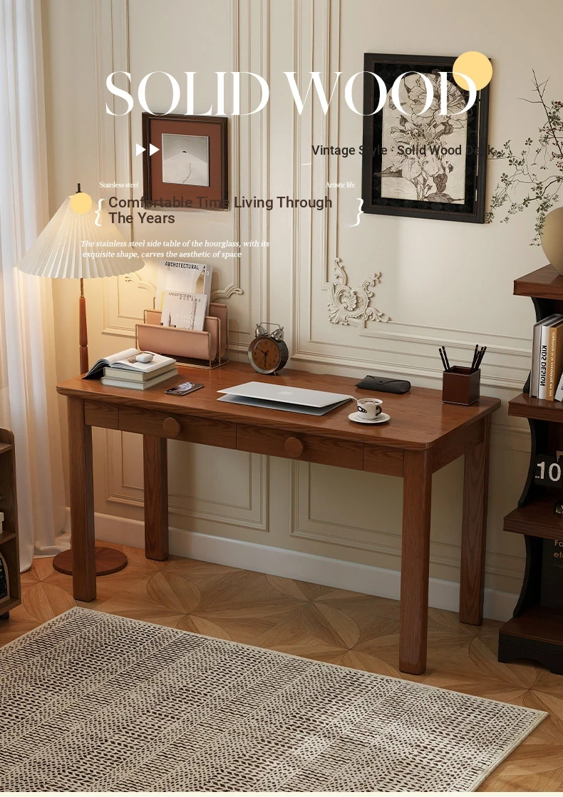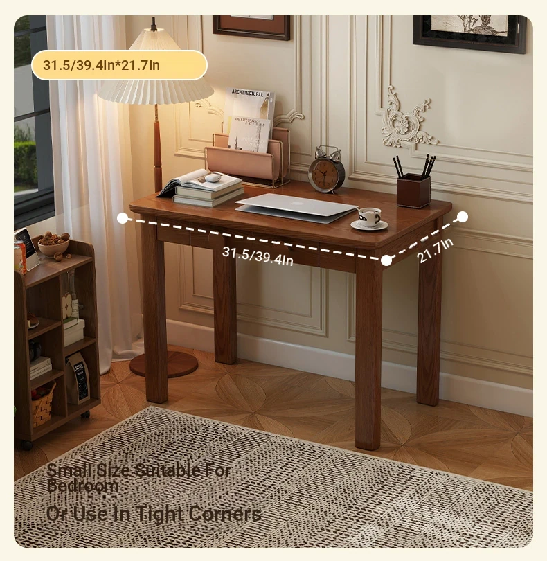 Vintage Solid Wood Writing Desk with Drawers - Ideal for Home Office, Student Study, and Small Spaces - Retro Computer Table