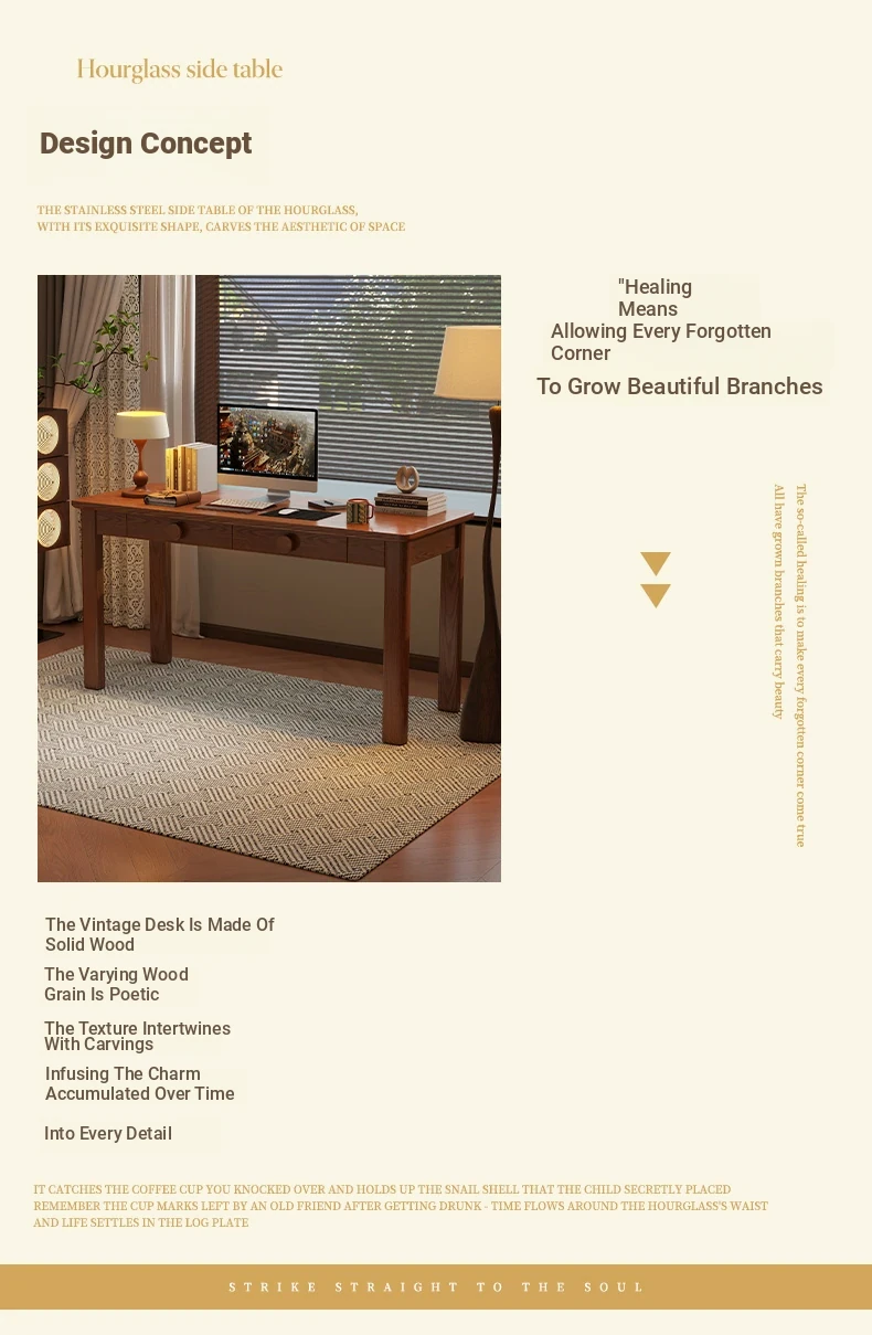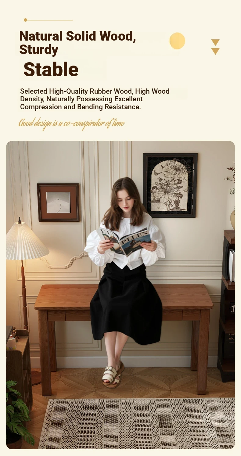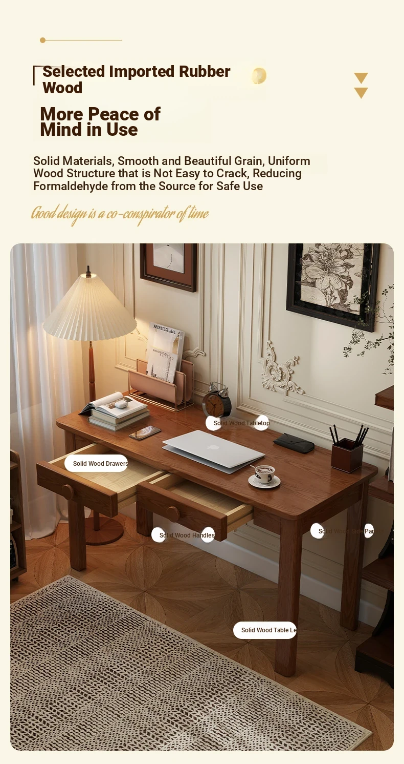 Vintage Solid Wood Writing Desk with Drawers - Ideal for Home Office, Student Study, and Small Spaces - Retro Computer Table