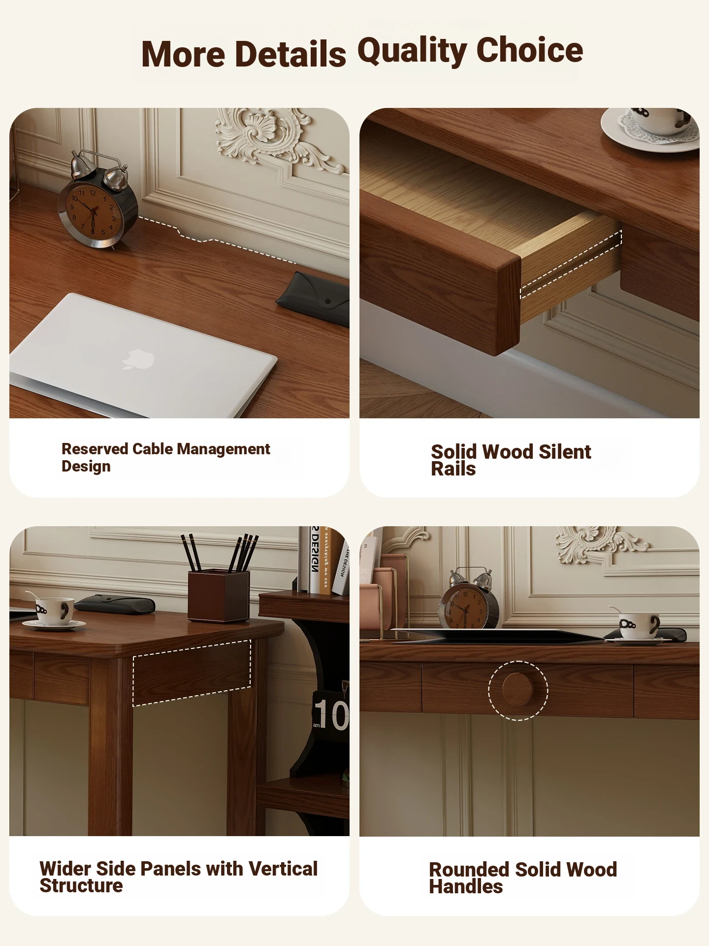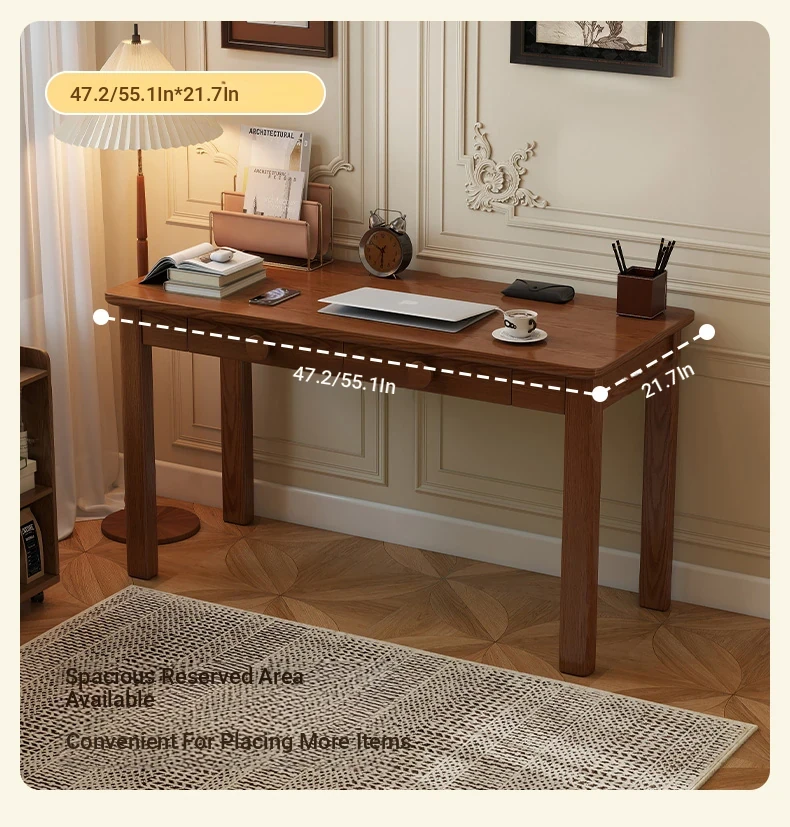 47.24in [Walnut Color] Double Drawers - All Solid Wood