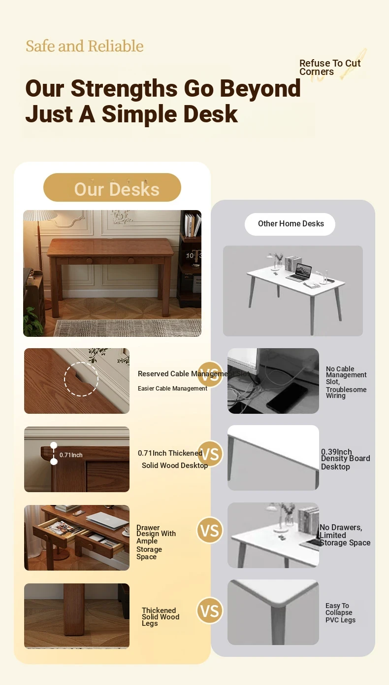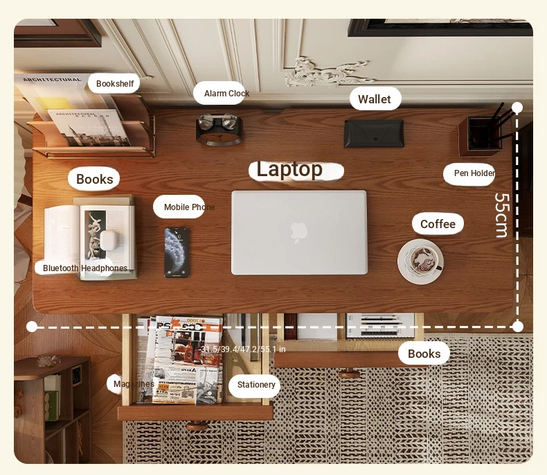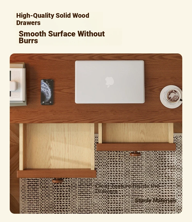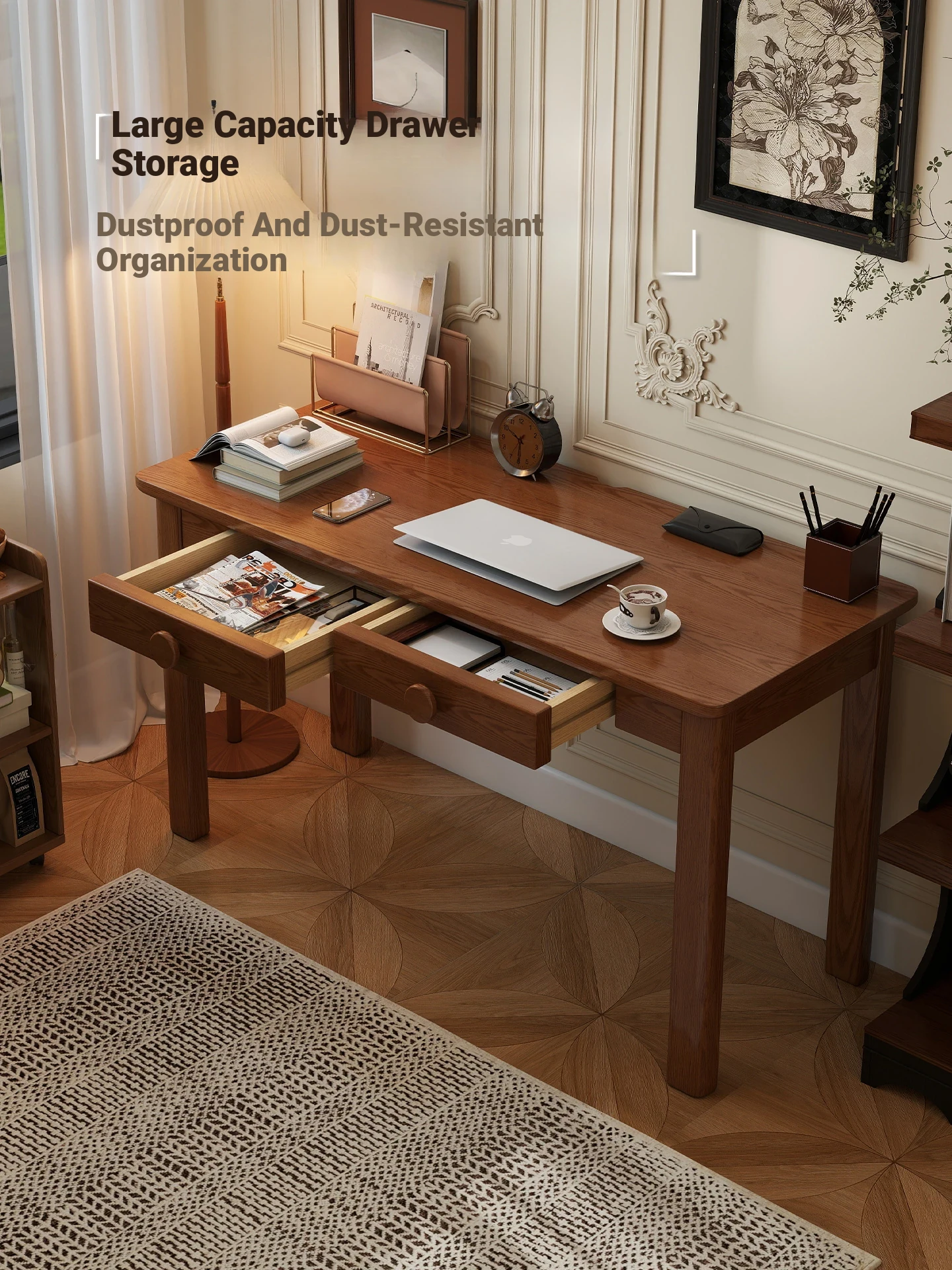 55.12in [Walnut Color] Double Drawers - All Solid Wood