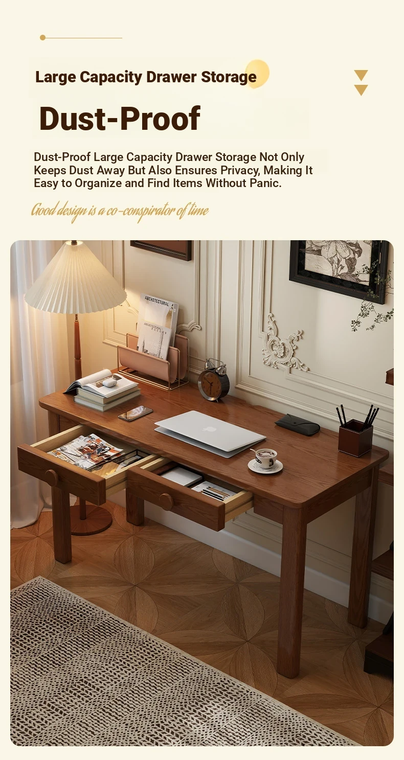 39.37in [Walnut Color] Double Drawers - All Solid Wood