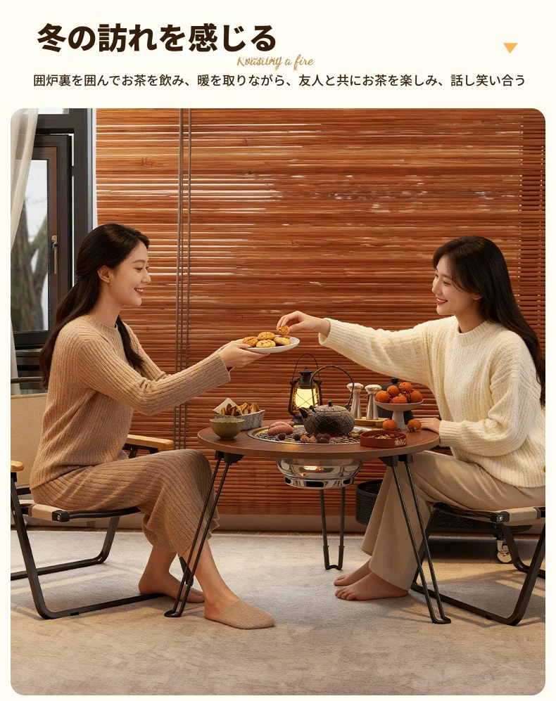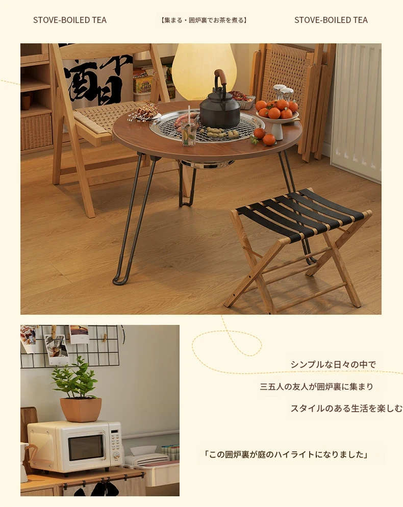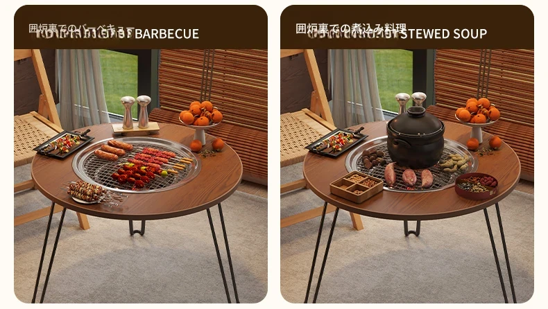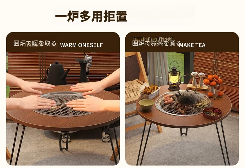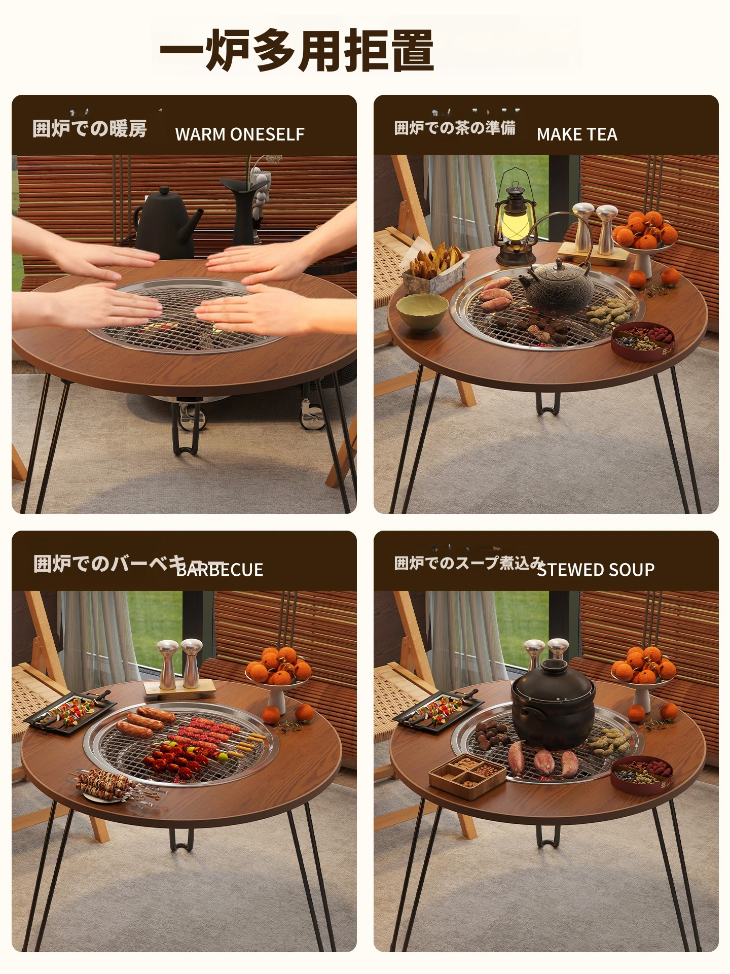 新作!囲炉裏スタイルの家庭用焼肉グリルセット - アウトドアに最適な折りたたみ式バーベキューテーブル&キャンプ用グリルで、暖かいお茶を楽しみながら美味しい焼肉を!