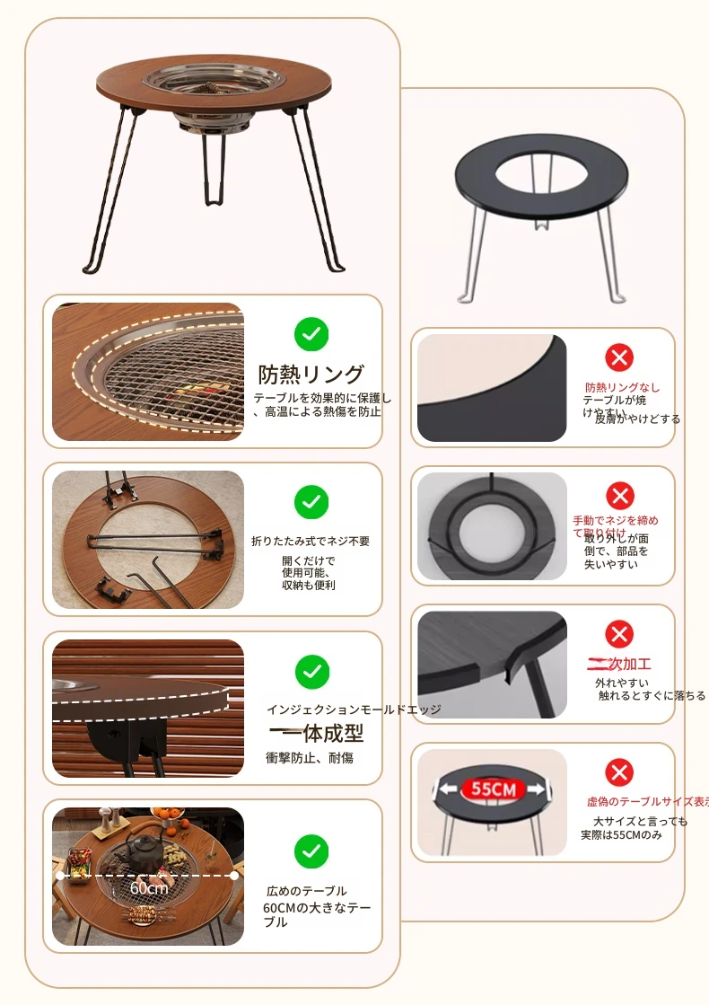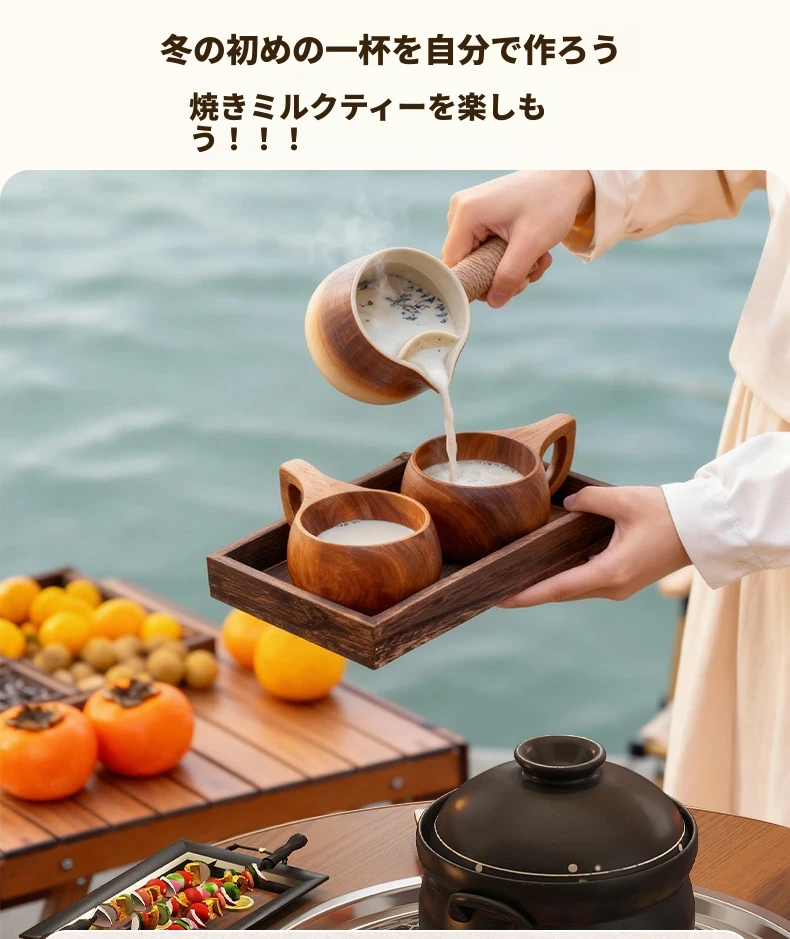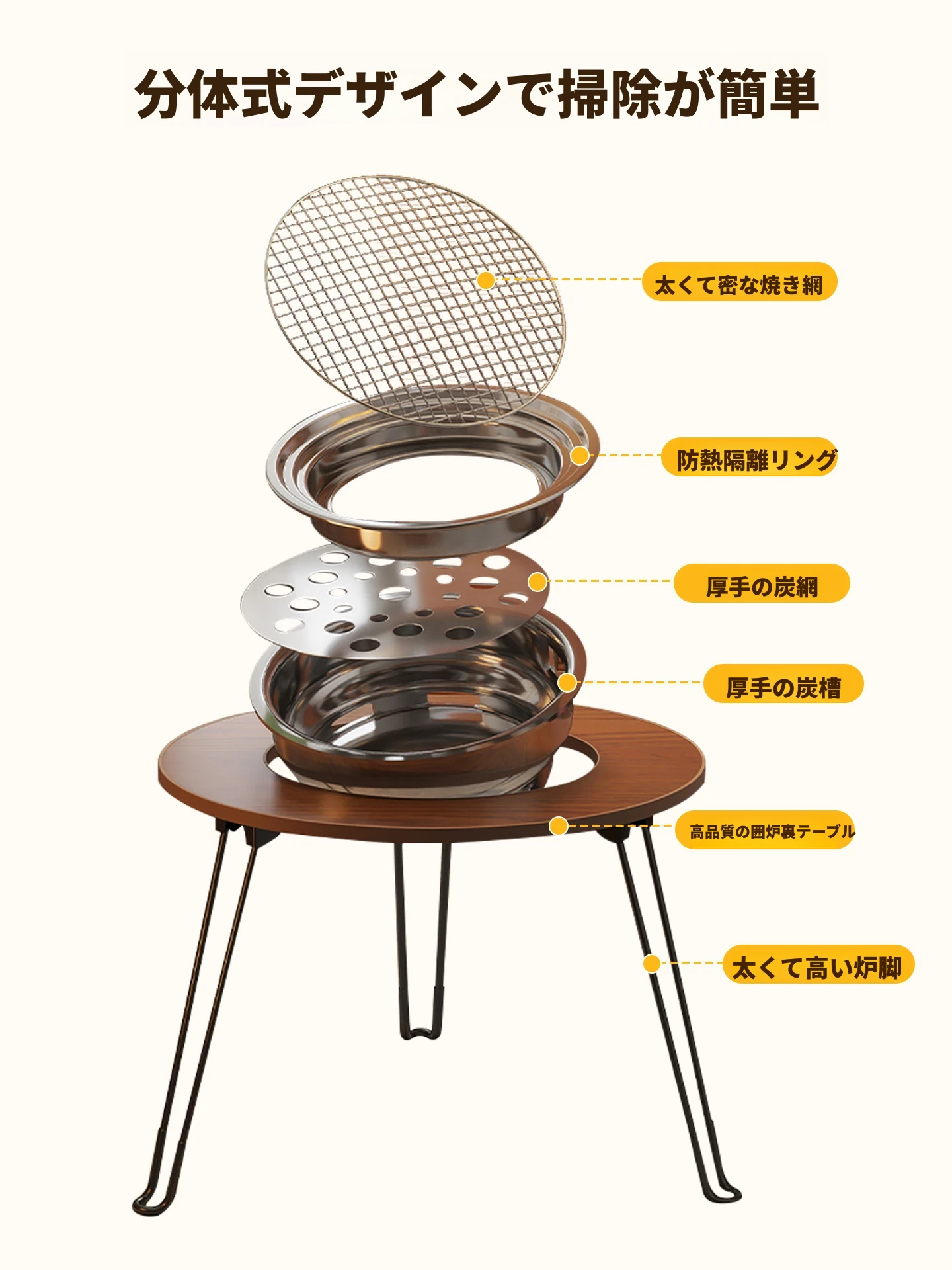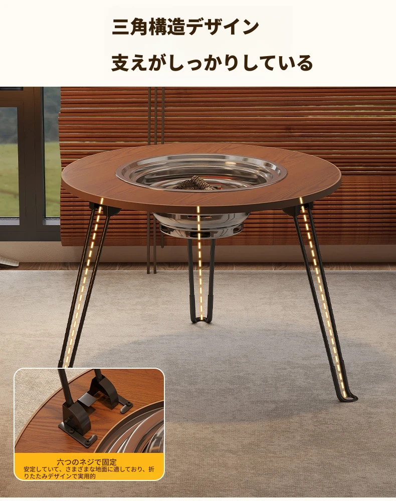 新作!囲炉裏スタイルの家庭用焼肉グリルセット - アウトドアに最適な折りたたみ式バーベキューテーブル&キャンプ用グリルで、暖かいお茶を楽しみながら美味しい焼肉を!